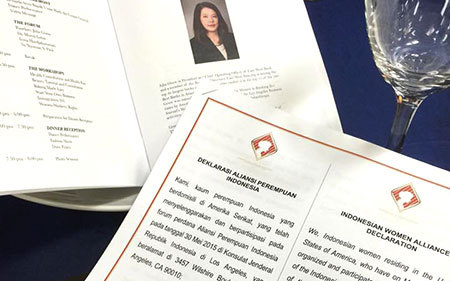 Deklarasi tersebut merupakan acara puncak dari forum Indonesian Women Alliance atau Aliansi Perempuan Indonesia, yang berlangsung di Konsulat Jenderal RI di Los Angeles, Sabtu (29/5/2015).